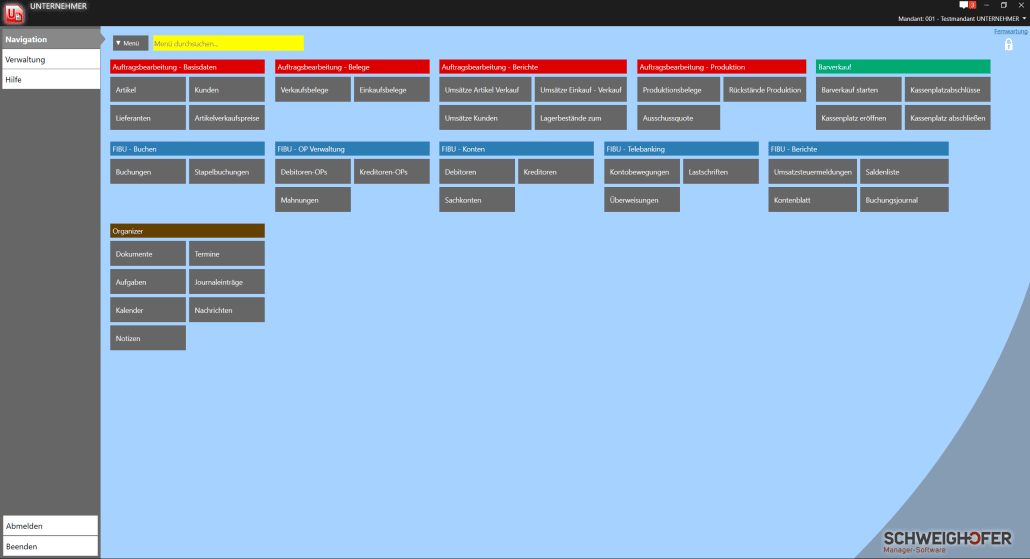 Ob ortsunabhängig in der SCHWEIGHOFER CLOUD oder als klassische Installations-Variante, unser Produkt UNTERNEHMER bietet Ihnen vollkommene Flexibilität für Ihre laufende Warenwirtschaft. Das Produkt ist daher ideal für alle Branchen, sowie Freiberufler, Kleinunternehmen und Startups geeignet.